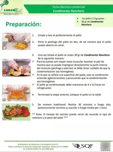 Rendimiento: Un pollo 1.3 kg aprox. = 30 gr de Condimento ranchero normal
